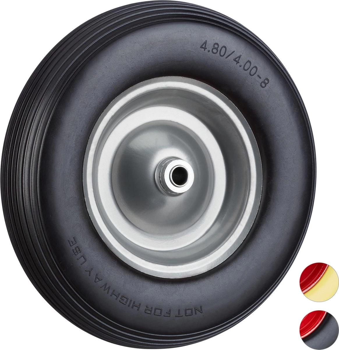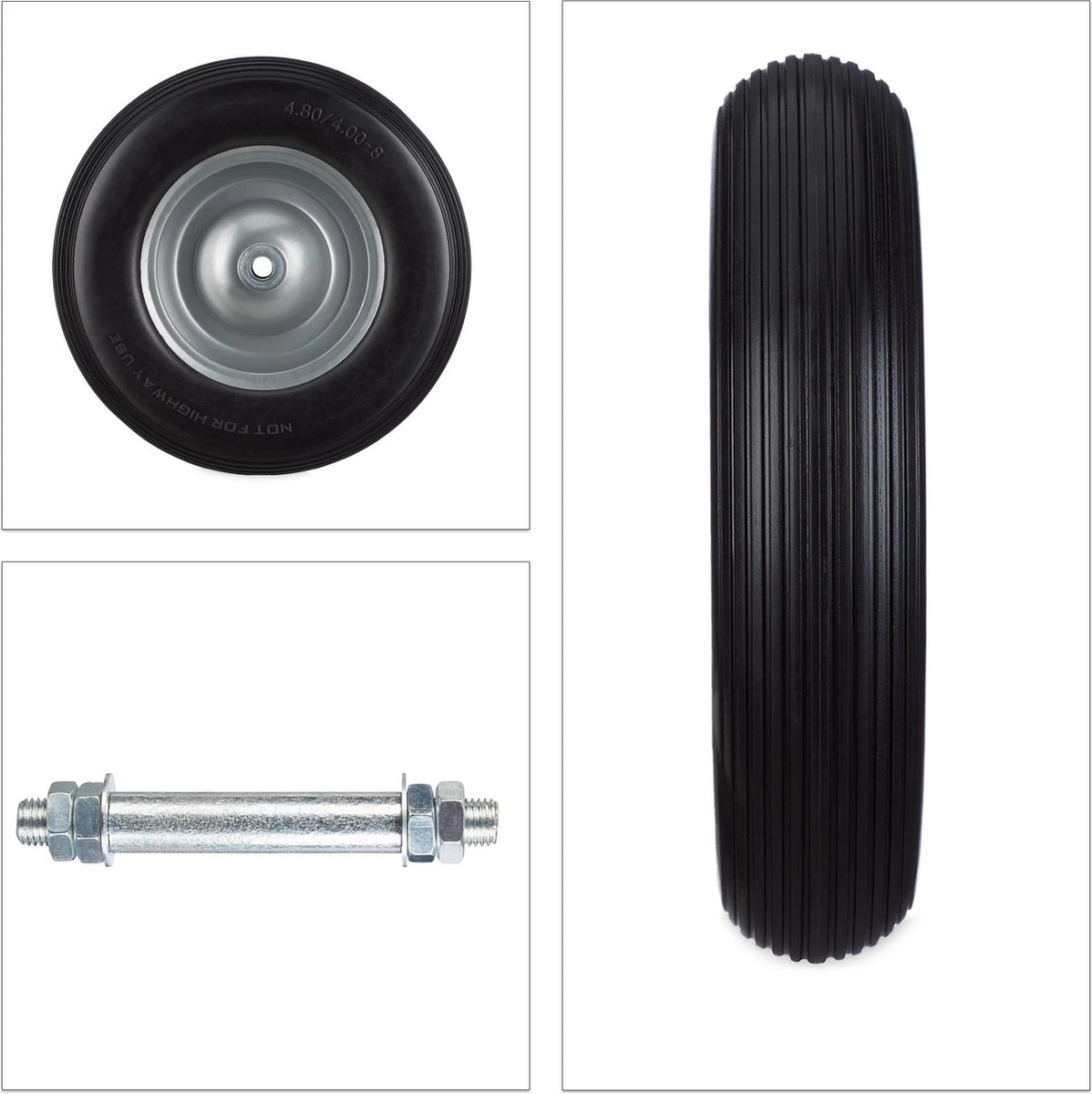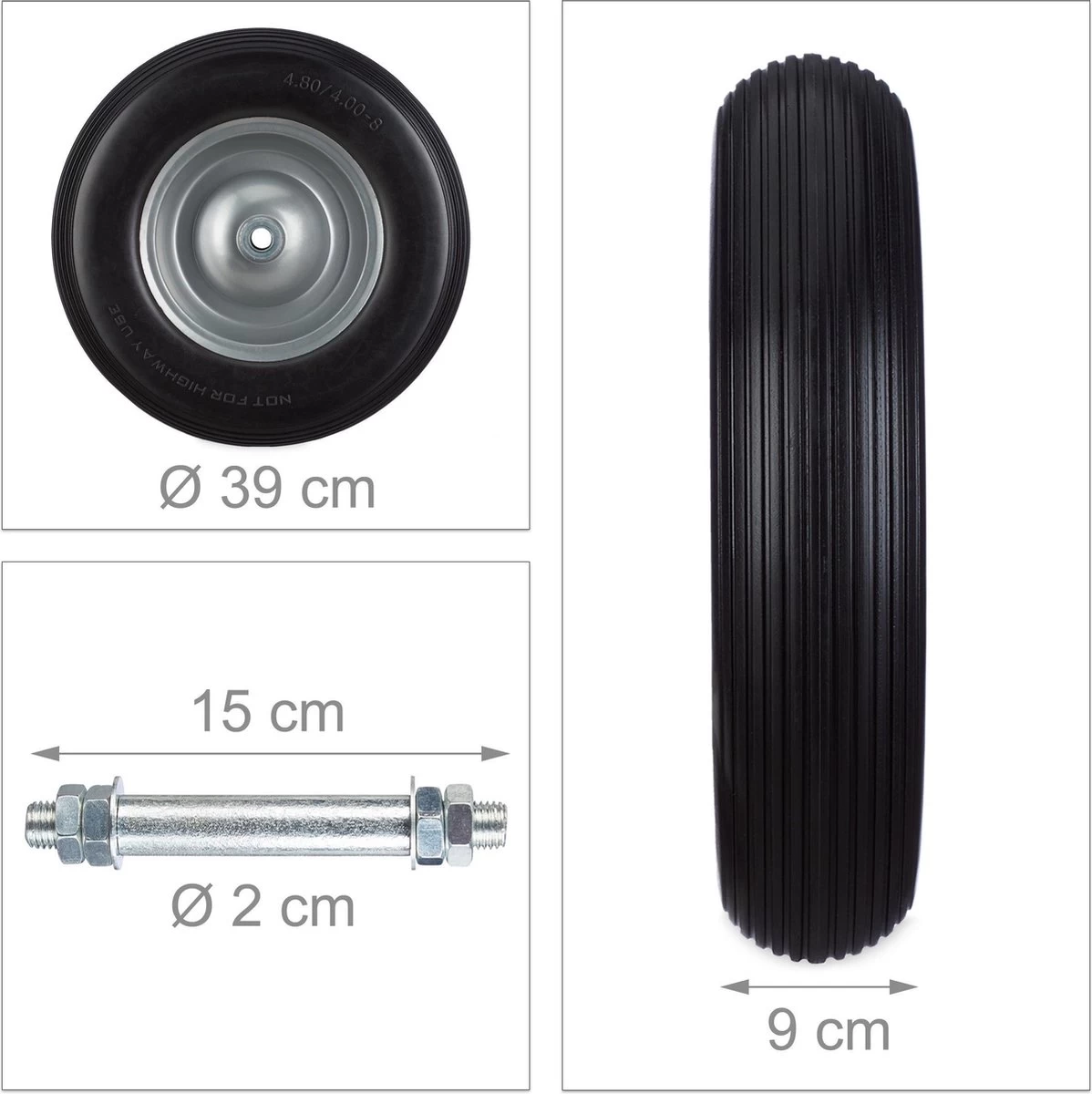 Caoutchouc De Roue De Brouette Relaxdays – Roue De Wagon Avec Essieu – Pneu Anti-crevaison Jante Acier Zwart – Gris