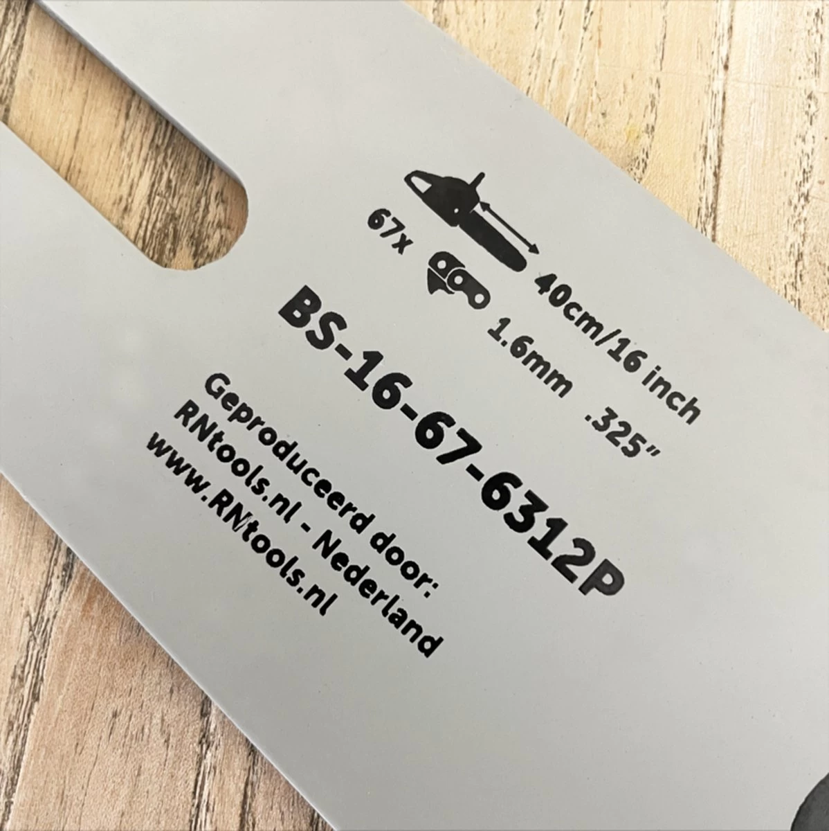 Offre combinée :Lame de scie RNtools 40cm 325″ 1.6mm pour tronçonneuses (spécialement pour Stihl) et 2X chaîne de scie RNtools 325″ 1.6mm, 67 maillons