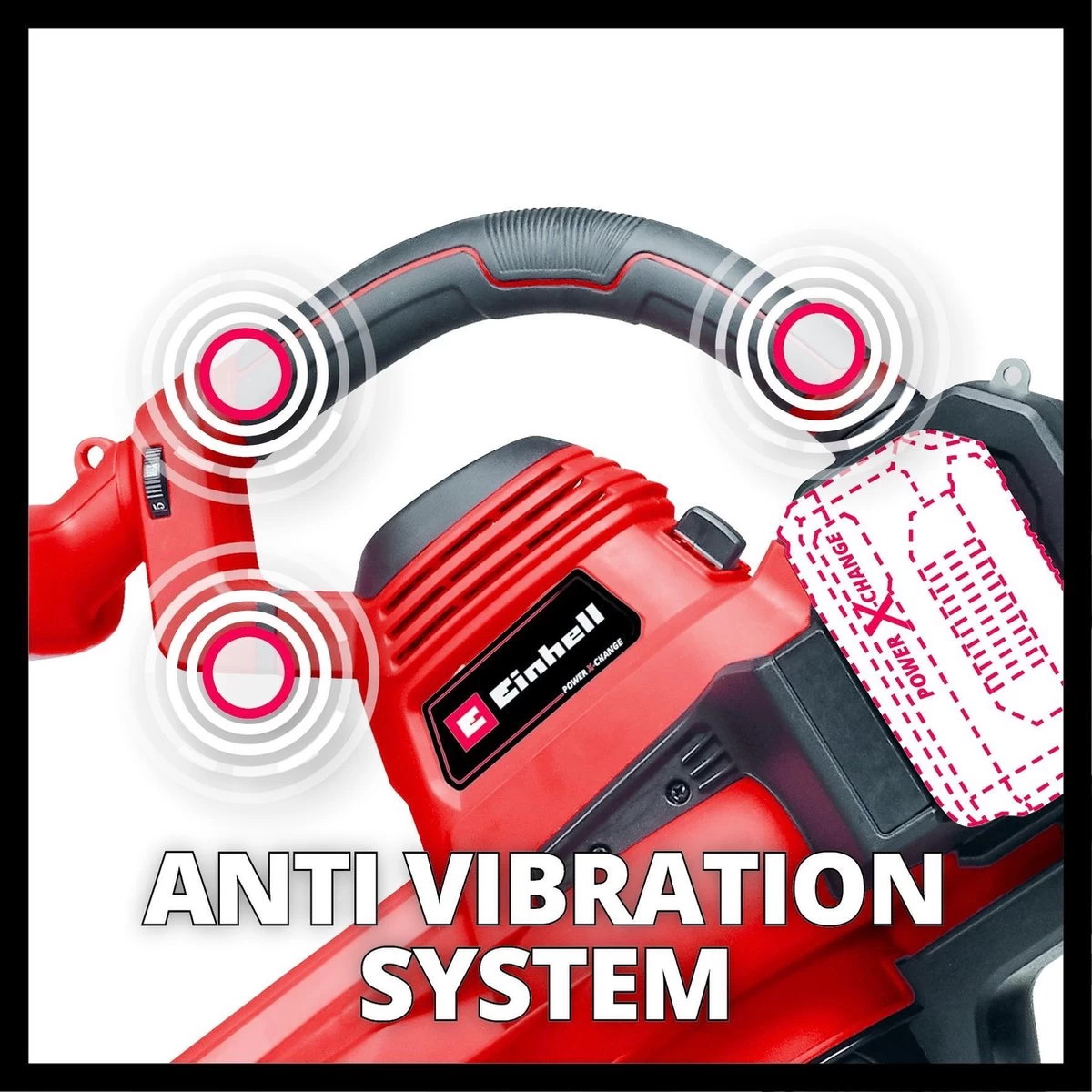 Le fonctionnement nécessite deux piles rechargeables 18 V , disponibles séparément. La conversion d’un tube d’aspiration large à un tube de soufflage étroit – tous deux fournis avec le produit – ne nécessite aucun outil. Il y a un interrupteur turbo intégré pour une force de soufflage maximale, un contrôle électronique de la vitesse et une ouverture de nettoyage avec interrupteur de sécurité. Pour pouvoir travailler confortablement, il est équipé d’une poignée ergonomique à prise souple et fonction anti-vibration, un