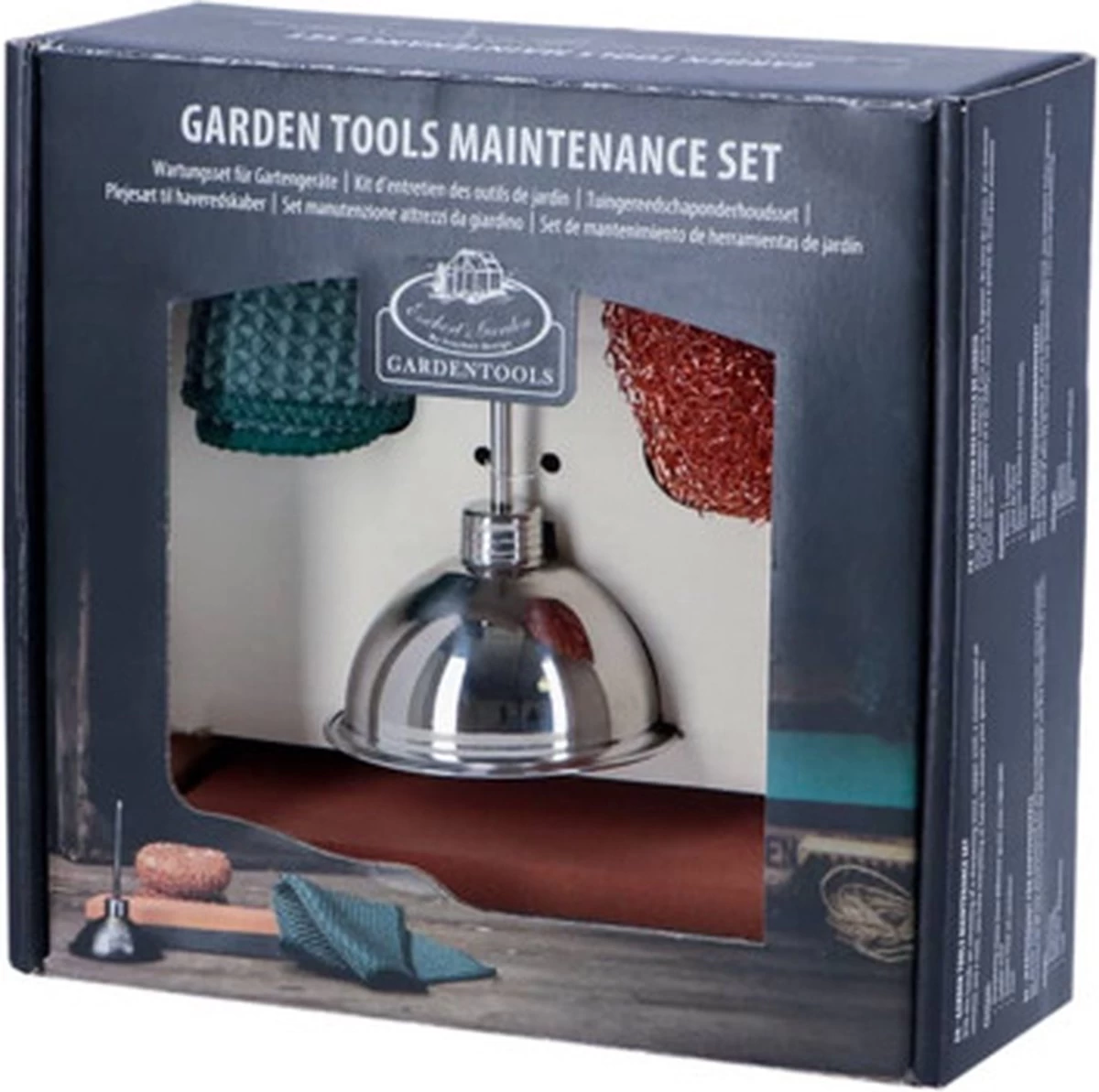 Prolongez la durée de vie des outils de jardin en les entretenant avec cet ensemble. L’ensemble se compose d’une pierre à aiguiser, de laine de cuivre, d’un pot à huile et d’un chiffon.