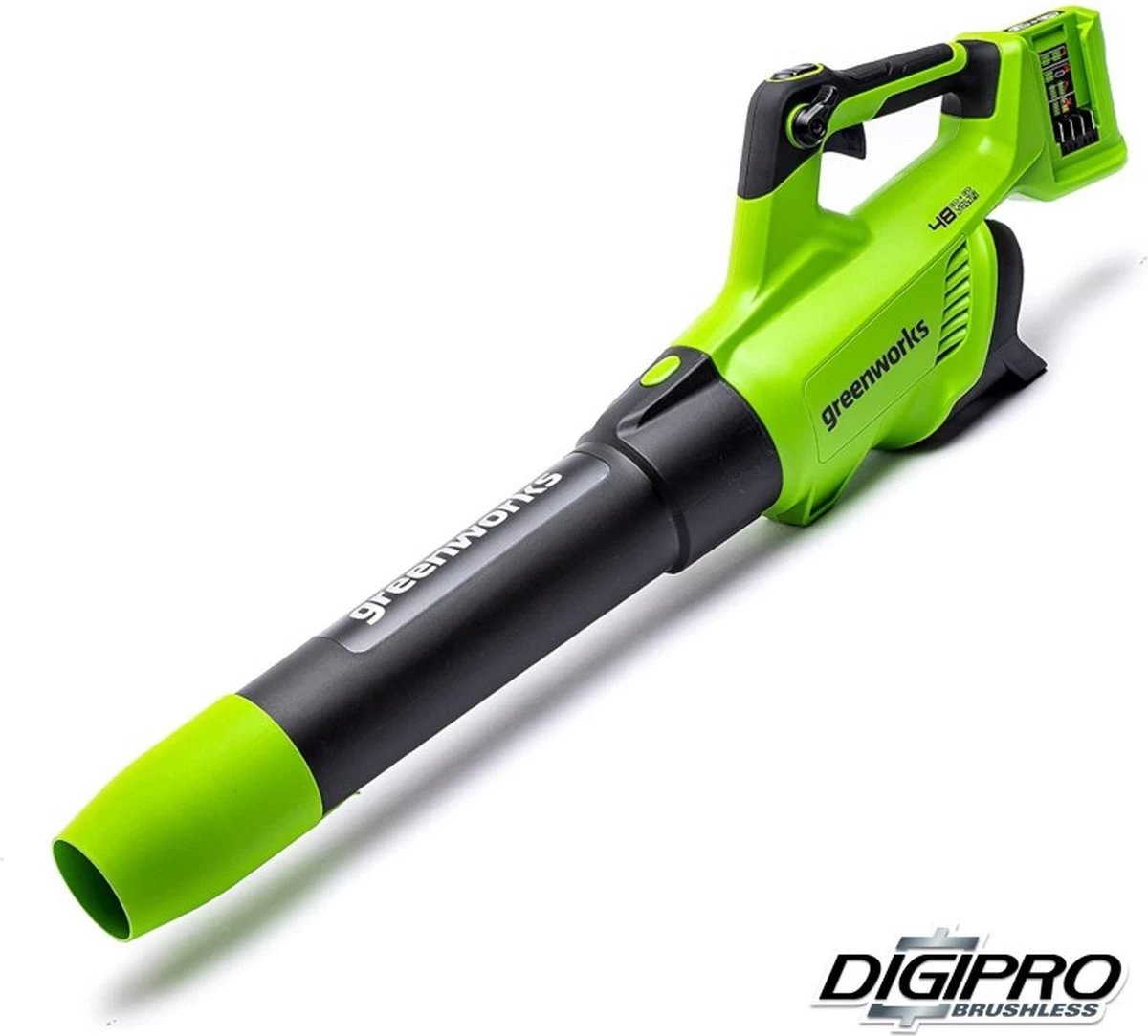 Avec la tondeuse à batterie Greenworks 48 Volt (2X24 Volt) de type GD24X2AB, vous disposez d’un souffleur de feuilles à batterie automoteur très puissant. En plaçant 2 batteries de 24 volts dans cette machine, vous obtenez une tondeuse à gazon de 48 volts. Les batteries sont connectées en série de sorte que 2 x 24 = 48 Volt. Le moteur sans balais en carbone DIGIPRO fournit 30% de puissance supplémentaire et 70% de vibrations en moins. La tondeuse à gazon 48 volts est une alternative idéale pour l’utilisateur privé qui recherche une bonne alternative à un souffleur de feuilles à essence.