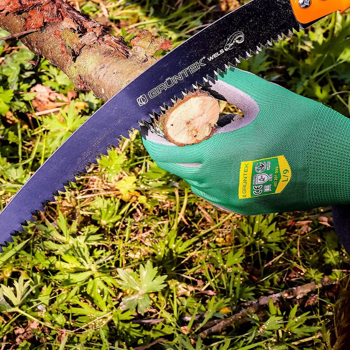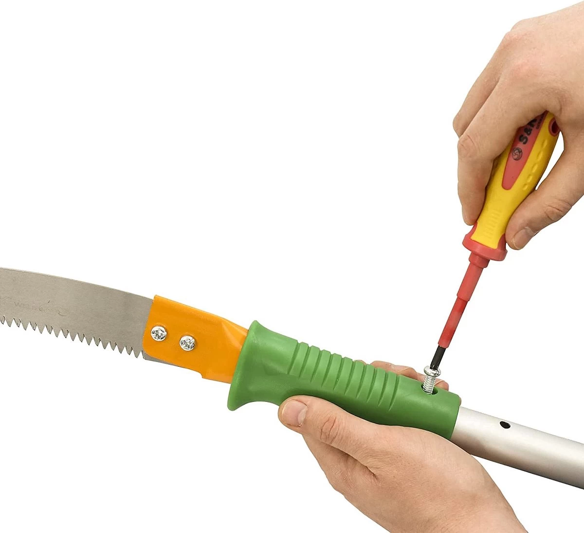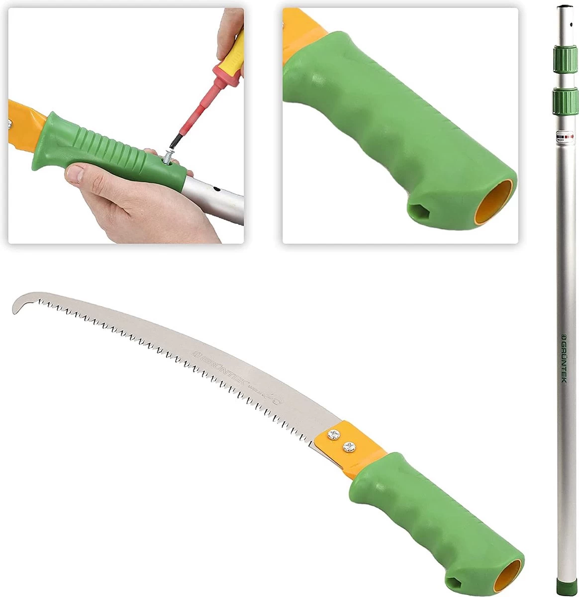 - GRÜNTEK Jeu de scies à branches télescopiques pour travaux de sciage jusqu’à environ 3 mètres de distance ; dimensions et poids (337 gr) : 50 cm ; longueur de lame 350 mm; tige télescopique : 100 à 240 cm (583 gr.)