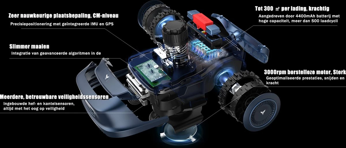 Neomow S, votre robot tondeuse efficace : Neomow S s’intègre parfaitement dans votre vie intelligente. Développé avec les algorithmes avancés en multi-fusion de différents capteurs, le Neomow S est optimisé pour vous offrir une expérience de tonte efficace et efficace et assurer une couverture de haut niveau, éliminant les tracas de l’entretien quotidien de votre pelouse. Il a été certifié par SGS et TUV, et la qualité et la sécurité de nos produits sont garanties.