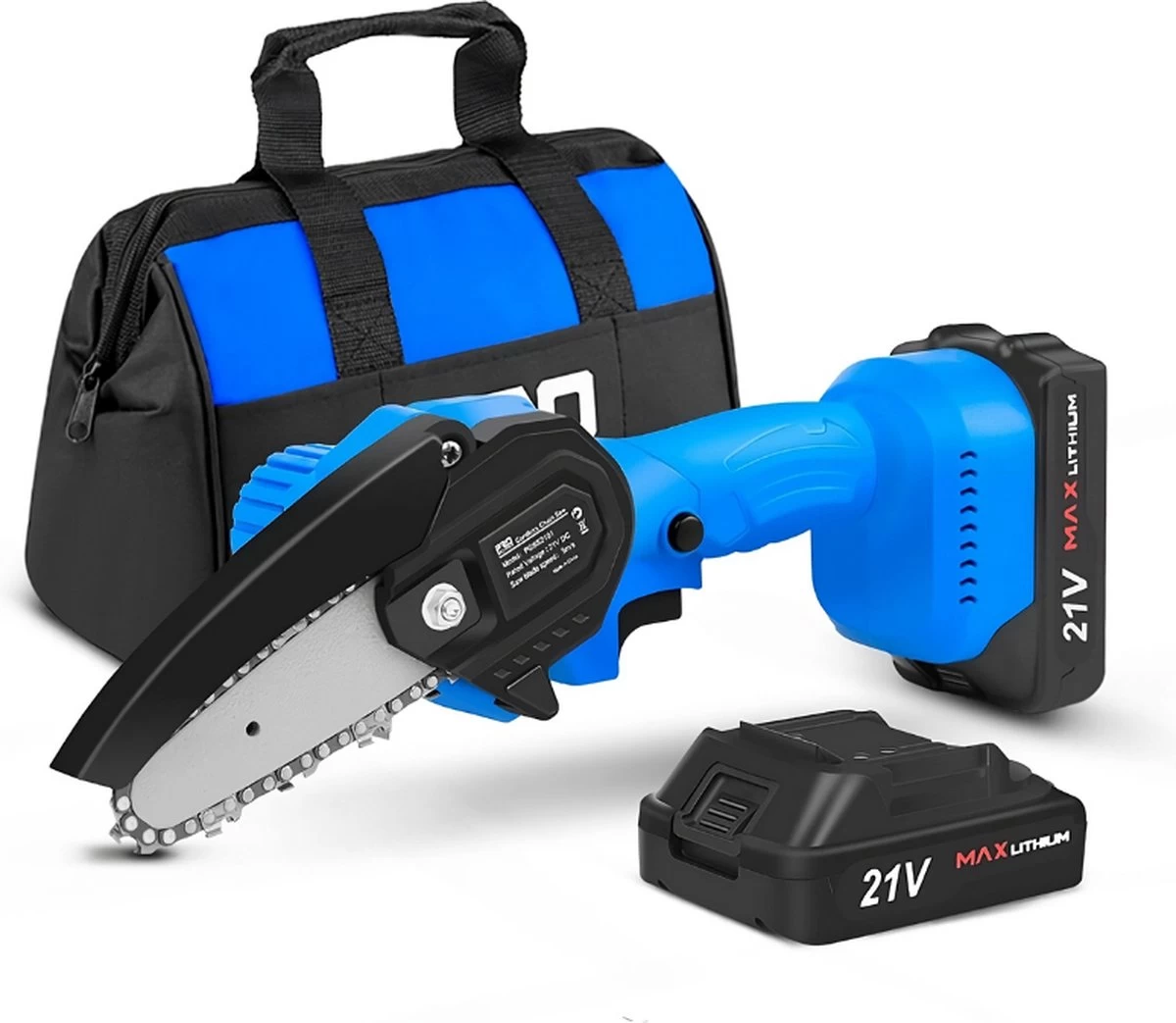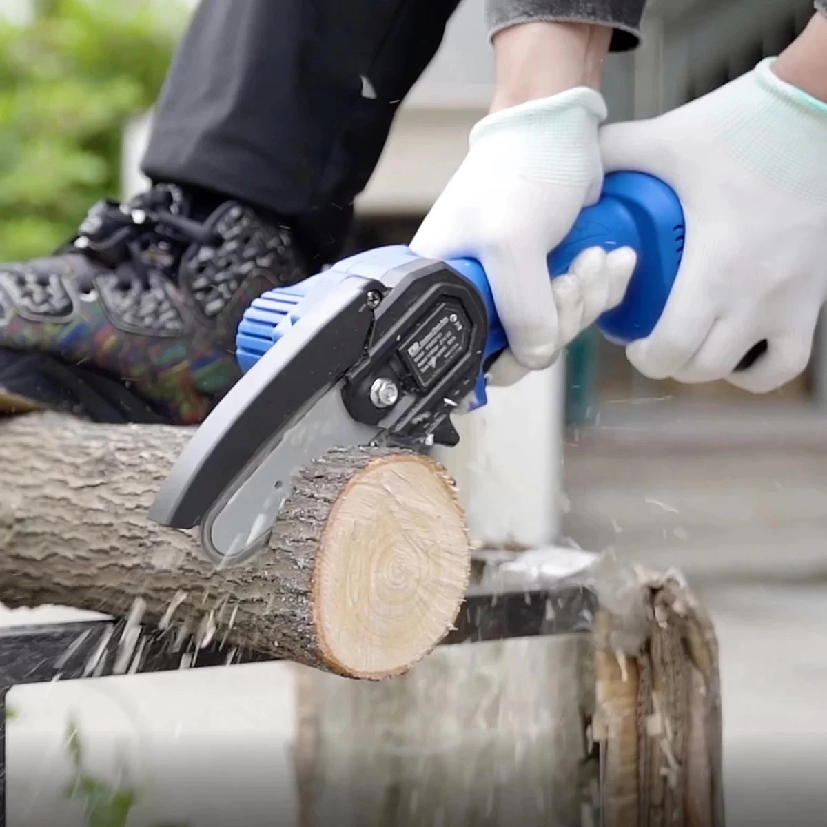 La mini tronçonneuse fonctionne avec une batterie de 2000 mAh, en plus, elle a une puissance puissante. La combinaison de ces deux aspects et du puissant moteur électrique de la scie rend la mini tronçonneuse incroyablement solide, votre branche ou votre tronc d’arbre sera complètement scié en un rien de temps.