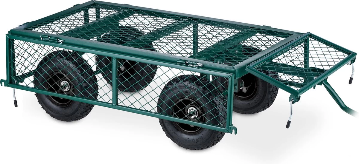 Avec cette charrette pratique, une charge est littéralement soulevée de vos épaules. Vous pouvez facilement transporter des caisses, des matériaux de construction pour les rénovations ou de la nourriture et des boissons pour les festivals. Comme la charrette à bras peut supporter un poids important, vous pouvez utiliser de manière optimale l’espace de chargement dans la charrette. Les 2 essieux et les pneumatiques profilés garantissent que vous pouvez également courir comme une voiture sur des surfaces inégales. Pour charger et décharger les articles, vous pouvez facilement rabattre ou retirer les 4 côtés du chariot à tirer.