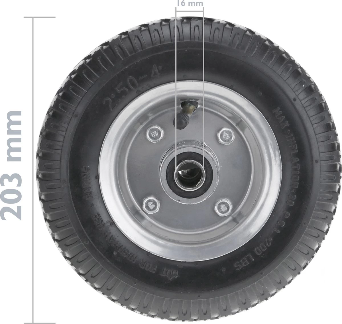 - Taille des roues (diamètre x largeur) : 8 x 2,5 po (203 x 64 mm).