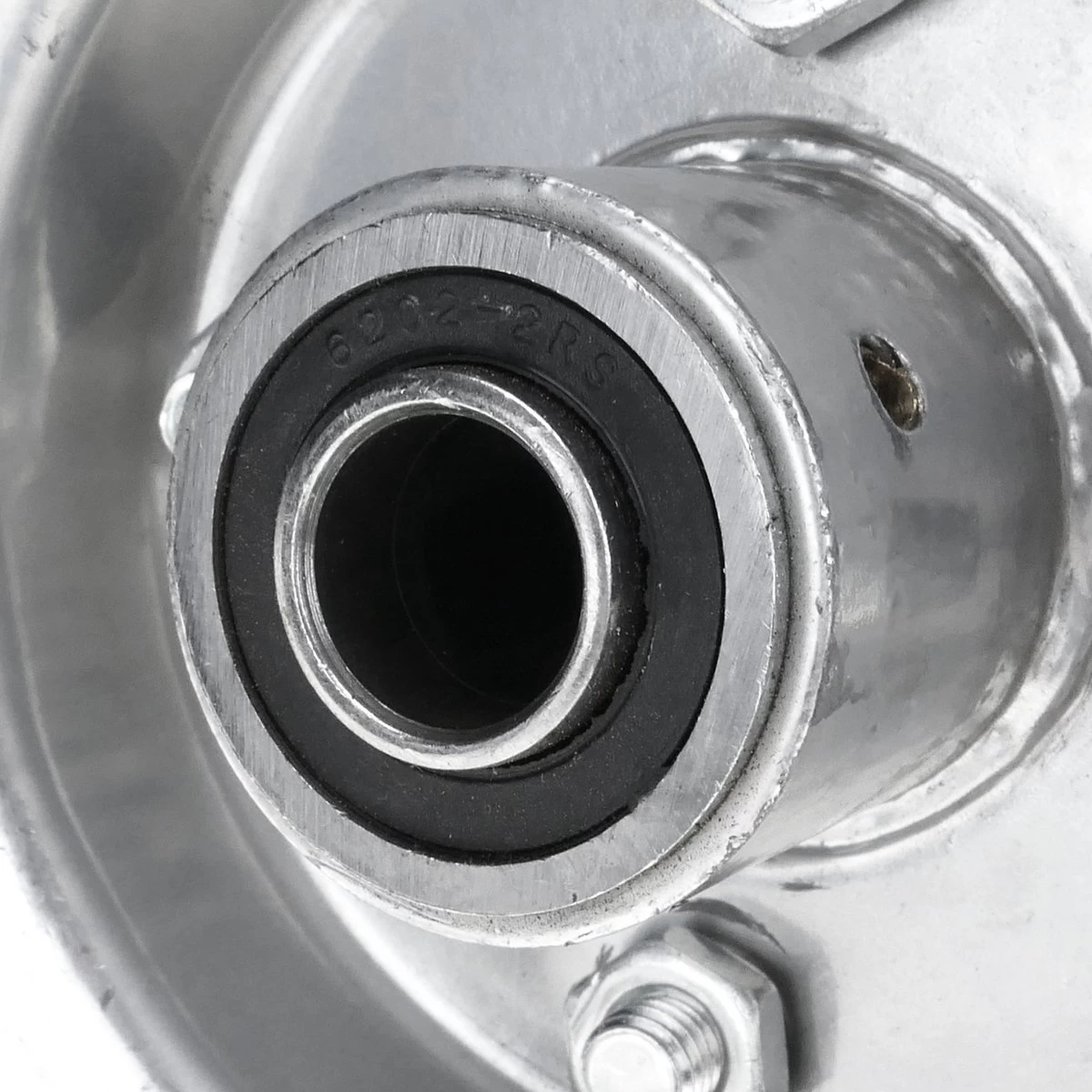 - Bord en métal argenté. Diamètre moyeu (axe central) : 16 mm. Longueur du moyeu : 80 mm.