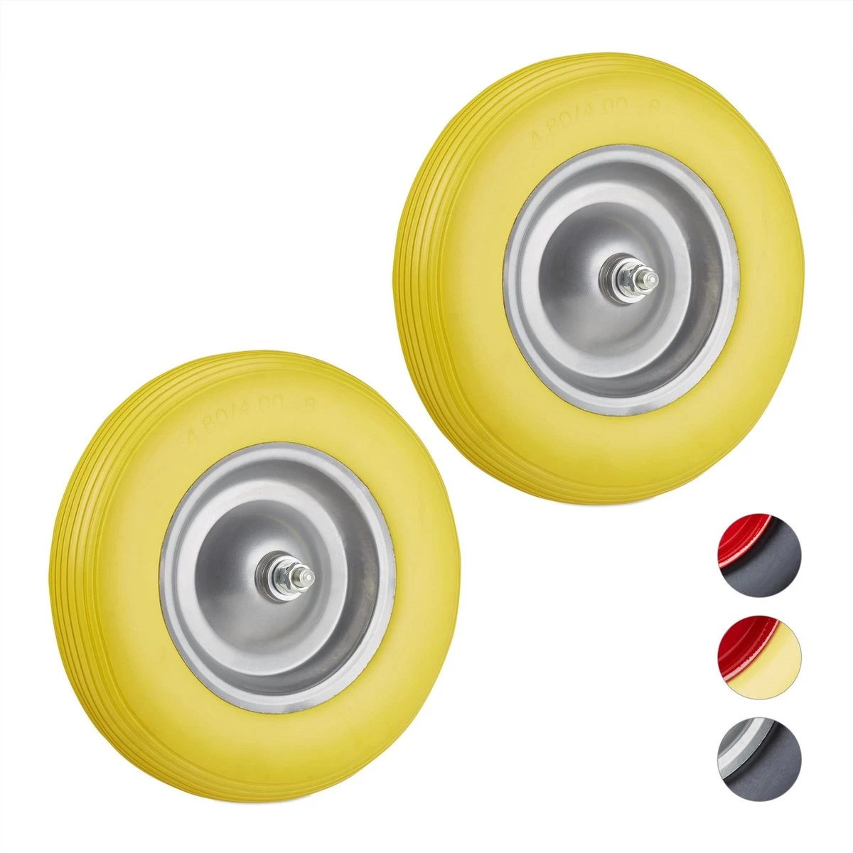 Relaxdays 2x Roue De Brouette Caoutchouc – Roue De Brouette Avec Axe – Jante En Acier Anti-crevaison