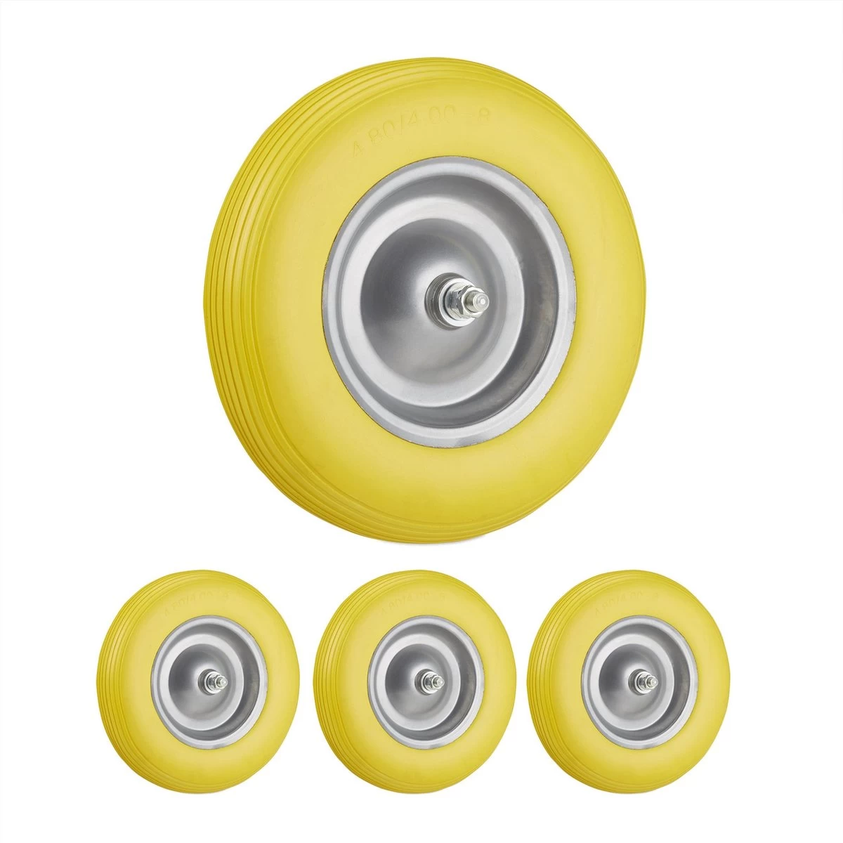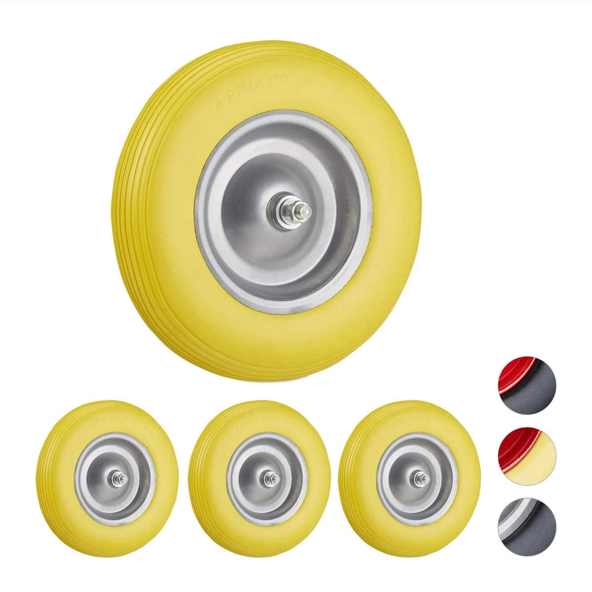 Relaxdays 4x Caoutchouc De Roue De Brouette – Roue De Chariot Avec Essieu – Jante En Acier De Pneu Anti-crevaison