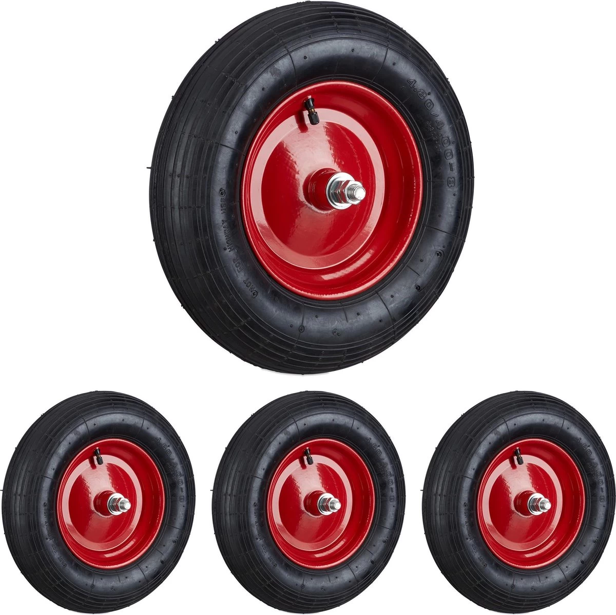 Relaxdays 4x Roue De Brouette 4.80 4.00-8 – Pneu Pneumatique Avec Essieu – Roue De Secours – Pneu De Brouette