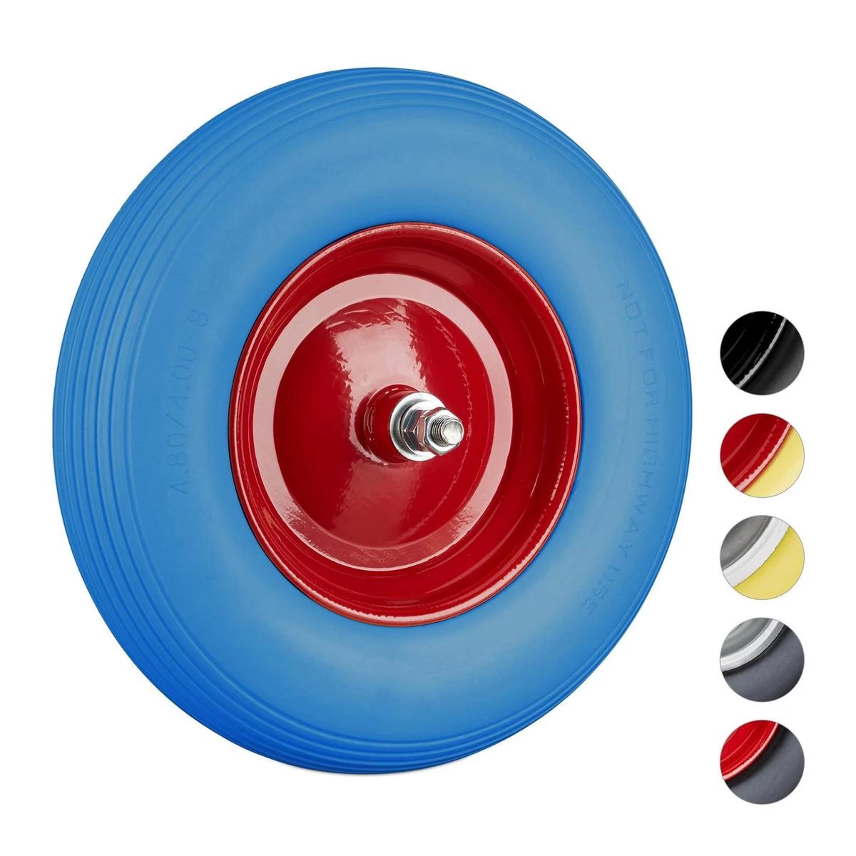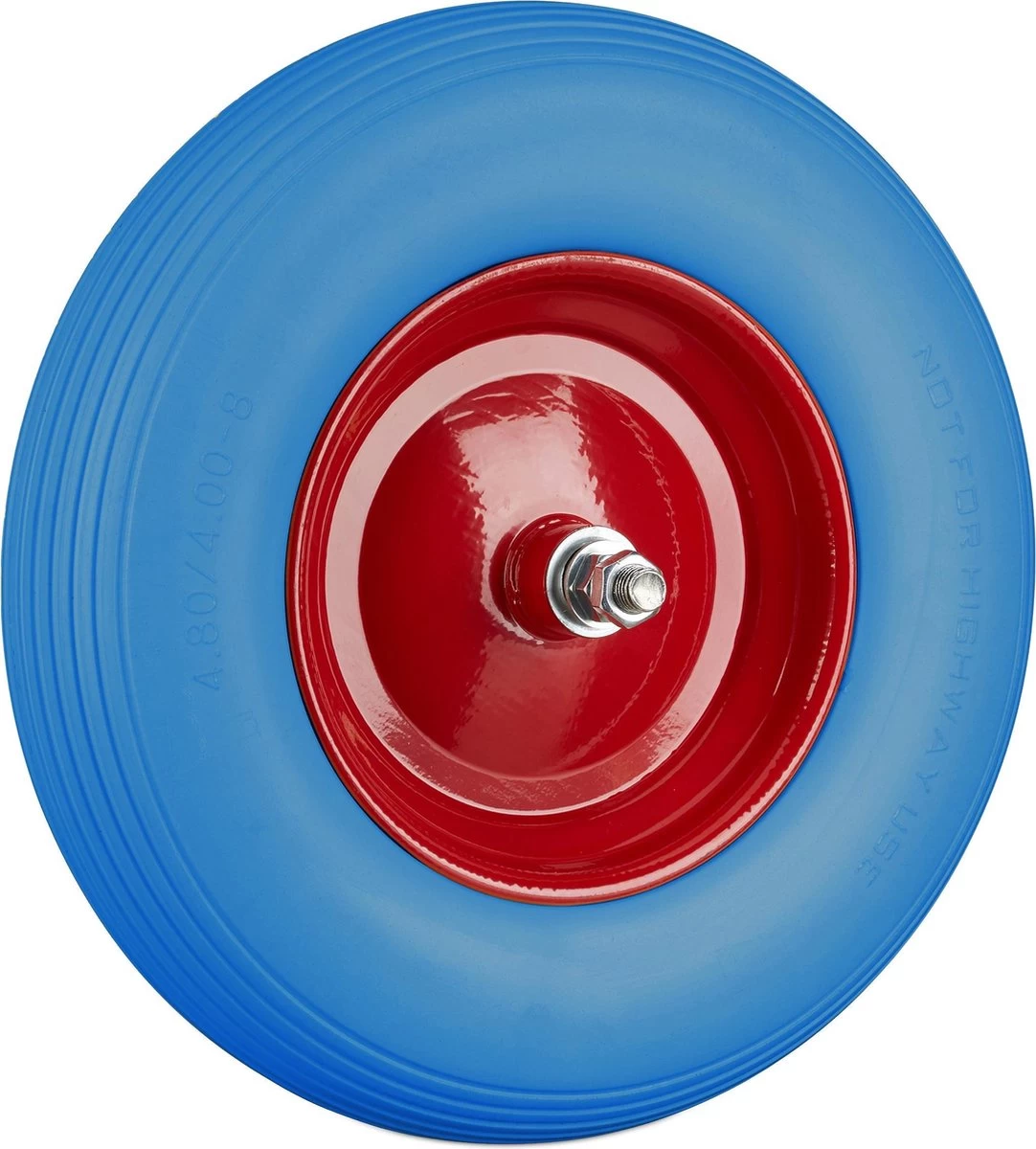Relaxdays Brouette De Roue En Caoutchouc – Roue De Chariot Avec Des Essieux – Acier Pneu Anti-crevaison Liseré Rouge Blauw