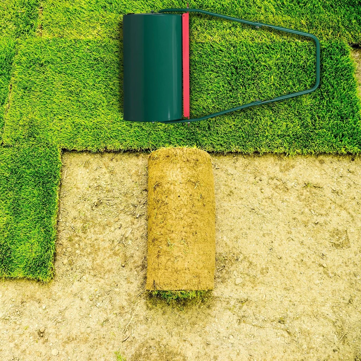 Après avoir semé de l’herbe, il est important de bien presser le sol. Un rouleau à herbe est extrêmement utile pour cela. Rempli d’eau ou de sable, le rouleau de jardin assure que les graines restent coincées dans le sol en raison de son poids. Pour ce faire, vous faites des allers-retours avec le rouleau à gazon sur l’herbe. Le rouleau de jardin est également parfait pour raffermir le sol et les irrégularités. La construction en acier solide est robuste et durable. Rouleau de jardin en détail – Largeur de travail: environ 57 cm – Diamètre: environ 32 cm – Hauteur totale: environ 110 cm – Largeur totale: environ 69 cm Plus de détails sur le rouleau de gazon – Volume: environ 48 L – Poids à vide: env.8,9 kg – Matériau: acier, caoutchouc – Couleur: vert, rouge Rouleau à gazon pour le remplissage – Pressage des graines de gazon – Compacter le sol – Niveler les inégalités – Remplissage avec de l’eau ou du sable – Avec grattoir pratique La livraison comprend – 1 x rouleau de jardin en pièces – Avec notice de montage – Avec matériel de montage – La Décoration n’est pas comprise dans la livraison