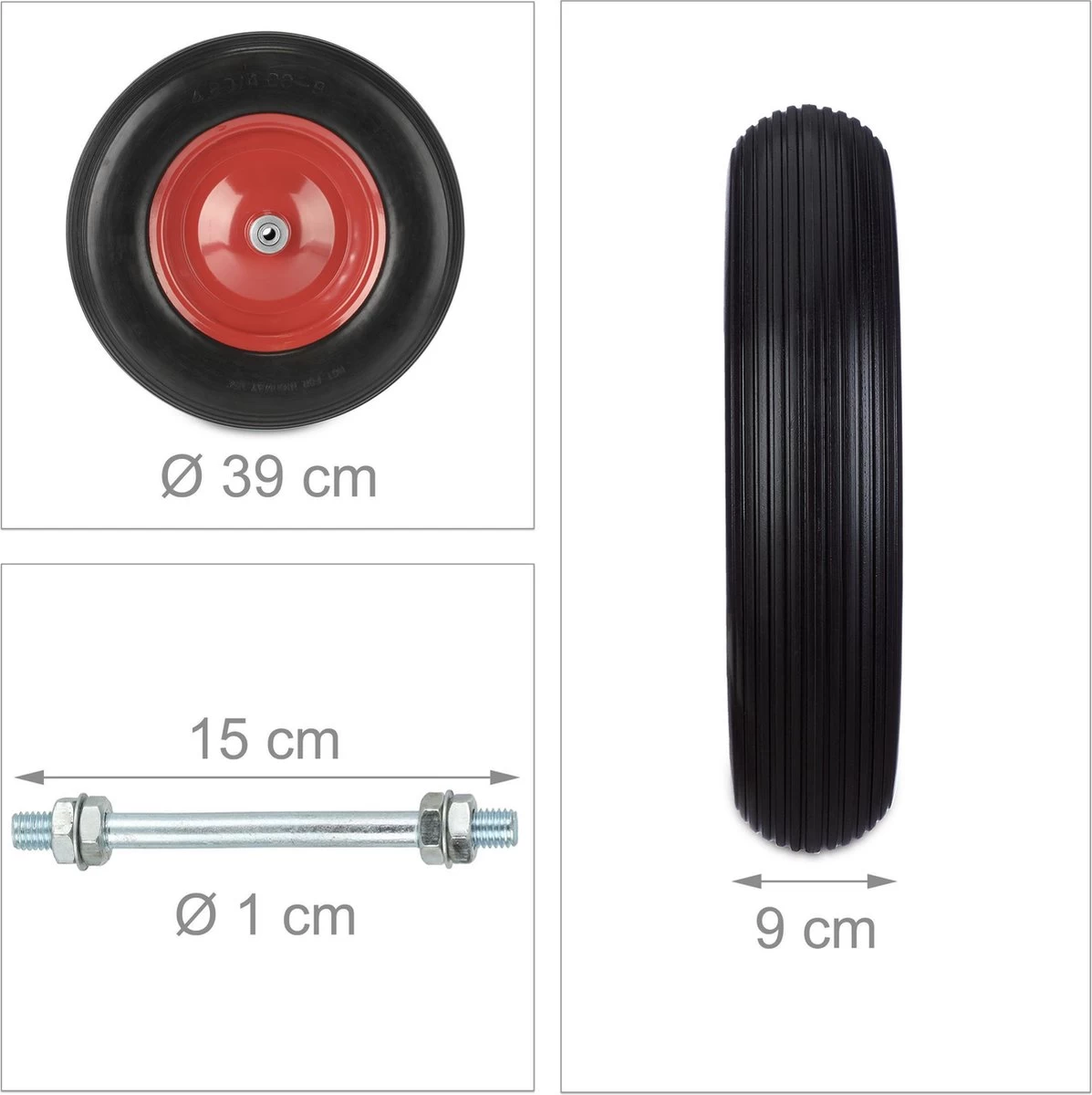 Si vous avez besoin d’une nieuw roue pour votre brouette, procurez-vous un pneu anti-crevaison avec la roue de brouette en caoutchouc. Il n’y a pas d’air dans la roue de secours, elle n’est donc pas sensible aux épines, clous et autres objets pointus. De plus, le pneu en caoutchouc plein est toujours prêt à l’emploi car il ne peut pas perdre d’air. Le roulement à billes et la bande de roulement profilée facilitent la conduite.