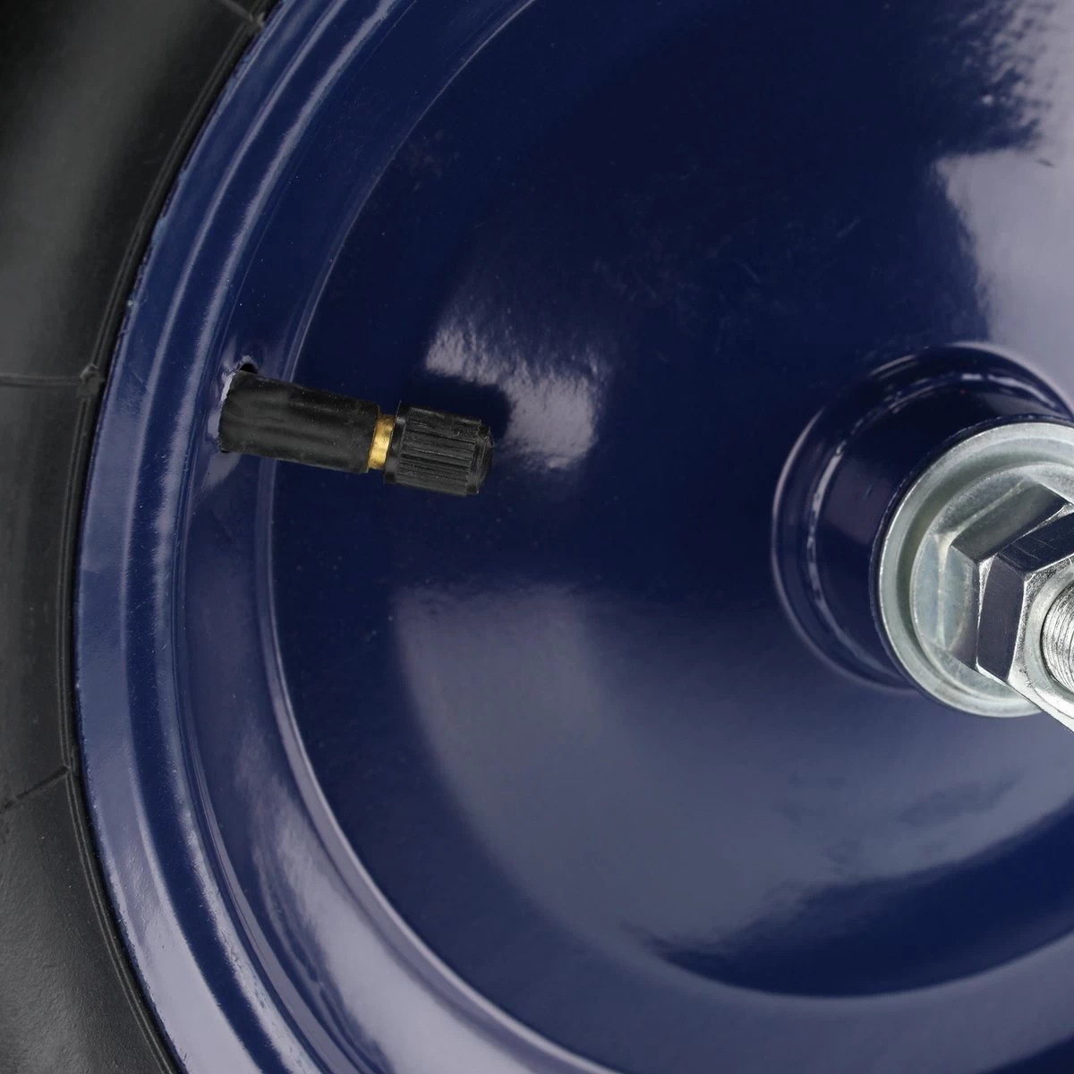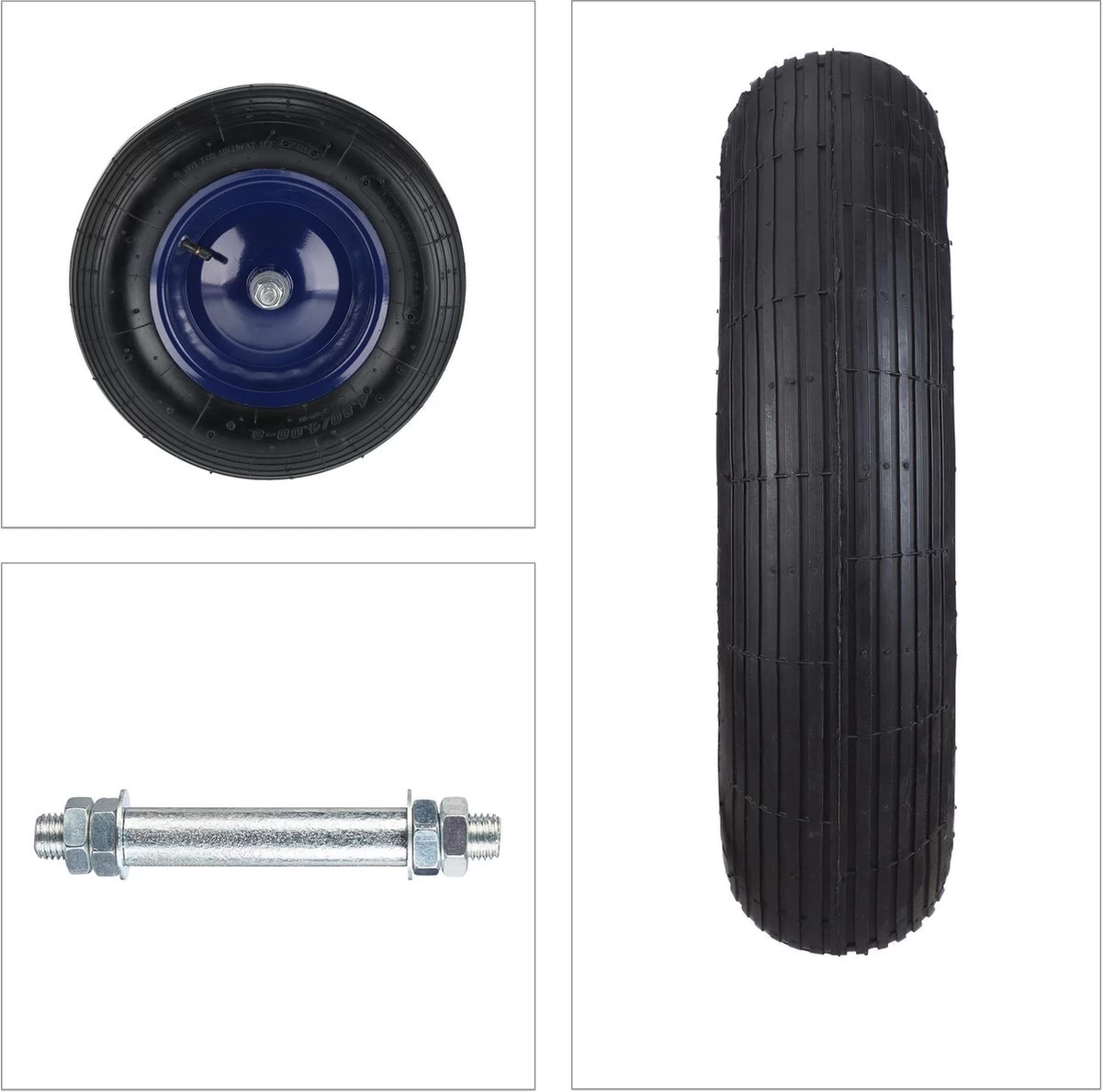 Si vous avez besoin d’une nieuw roue pour votre brouette, procurez-vous une roue de secours à air pour le meilleur confort de conduite à la maison avec le pneu de brouette 4.80 4.00-8. La roue de jante en acier est remplie d’air, ce qui la rend facile à tourner et absorbe bien les chocs. L’essieu et le roulement à billes et la bande de roulement profilée facilitent la poussée de la brouette même à poids élevé. Le gonflage du pneu noir-bleu est rapide et facile grâce à la valve de la voiture.