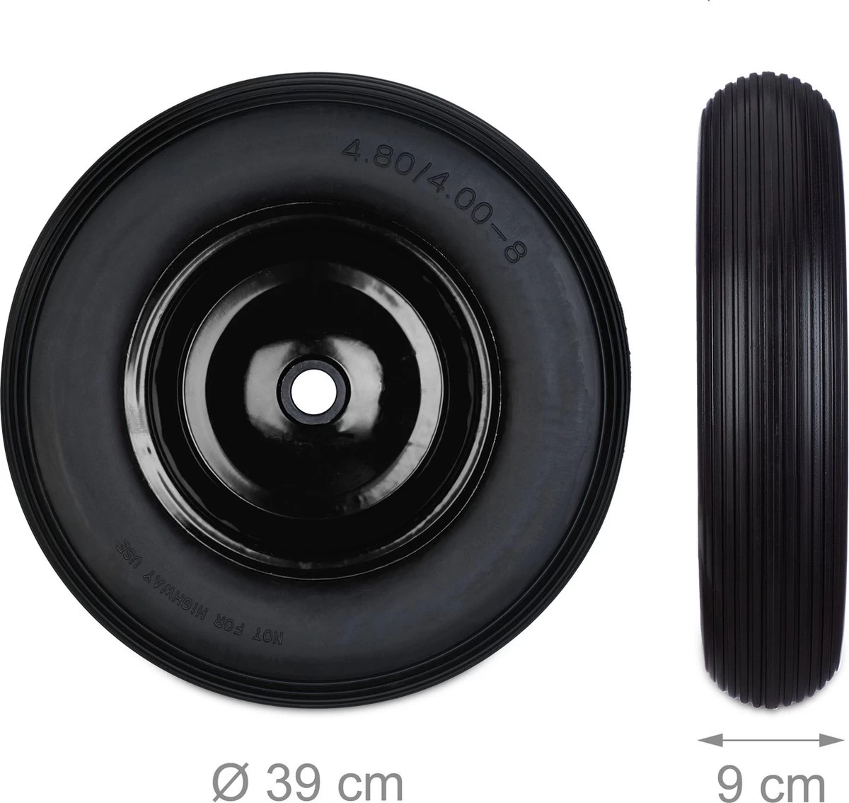 Roue De Brouette Relaxdays Anti Crevaison – 4.80 4.00-8 – 3 Adaptateurs – Jante Acier – Complet Schwarz-Schwarz