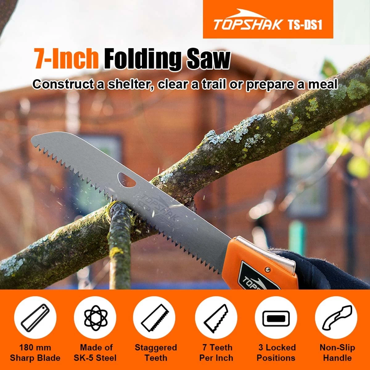 - Scie pliante de 7 pouces, abri Constructa, dégagement d’un rail ou préparation d’un repas.