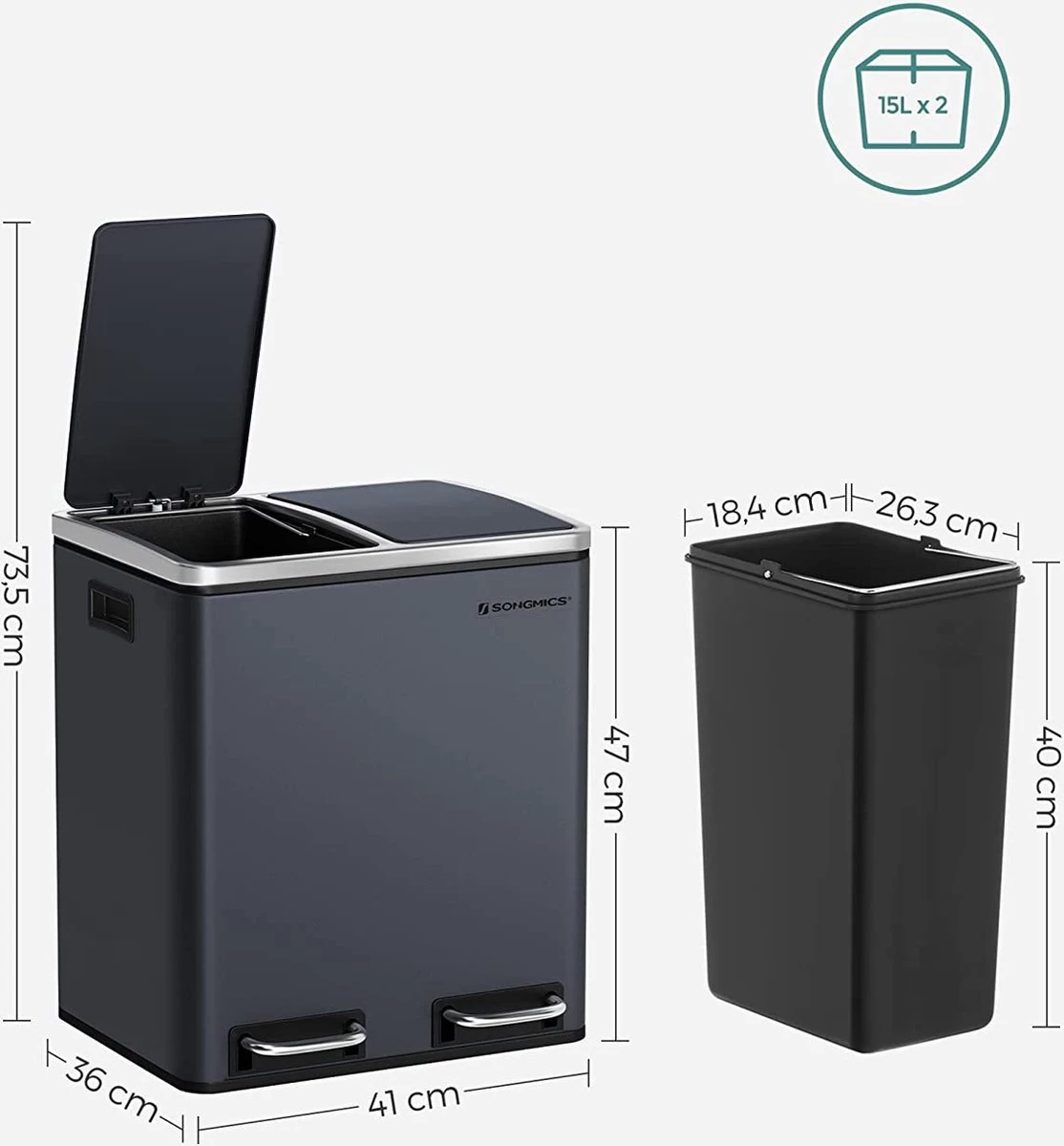 •Ce que vous obtenez : une poubelle moderne avec 2 compartiments de 15 litres pour trier facilement vos déchets. Alors offrez-vous cette poubelle et créez une maison propre