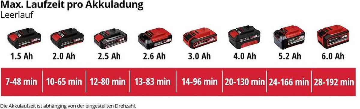 Avec le puissant système de batterie Einhell Power X-Change, vous pouvez utiliser une batterie pour plus de 250 produits différents. Power X-Change vous offre la possibilité de combiner tous les différents produits et machines de cette gamme de produits. De la perceuse à la tondeuse à gazon et de la tronçonneuse à l’aspirateur ; avec une batterie Power X-Change, vous fournissez à vos appareils préférés la bonne puissance. Vous travaillez ici avec un seul type de batterie de 18 volts, avec les machines plus lourdes vous pouvez en combiner deux et utiliser du 36 volts. Si vous possédez cette batterie, vous pouvez connecter tous les appareils Power X-change à cette batterie. De plus, vous n’avez plus à vous soucier des câbles d’alimentation et vous profitez de la liberté sans fil avec le système de batterie Einhell.