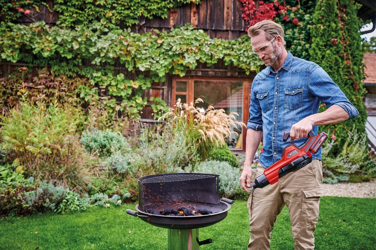 Avec le souffleur sans fil universel Einhell GE-UB 18/250 Li E Solo, l’ordre règne dans la maison et le jardin – et dans tous les coins, grâce à la liberté sans fil. Le souffleur de batterie fait partie de la gamme de produits Power X-Change. Une batterie 18 V est nécessaire pour le fonctionnement. Vous pouvez utiliser les batteries du système dans plus de 200 machines Einhell ; que ce soit au jardin ou à l’atelier. Le tube de soufflage en plusieurs parties peut être utilisé pour diverses applications dans la maison et le jardin, par exemple comme souffleur de feuilles avec le tube de soufflage long, comme souffleur d’atelier avec le tube de soufflage de taille moyenne ou comme aide à l’allumage de barbecue avec le tube de soufflage court. tube soufflant de précision.