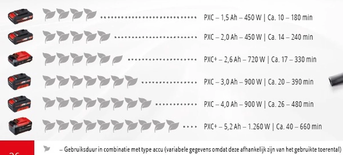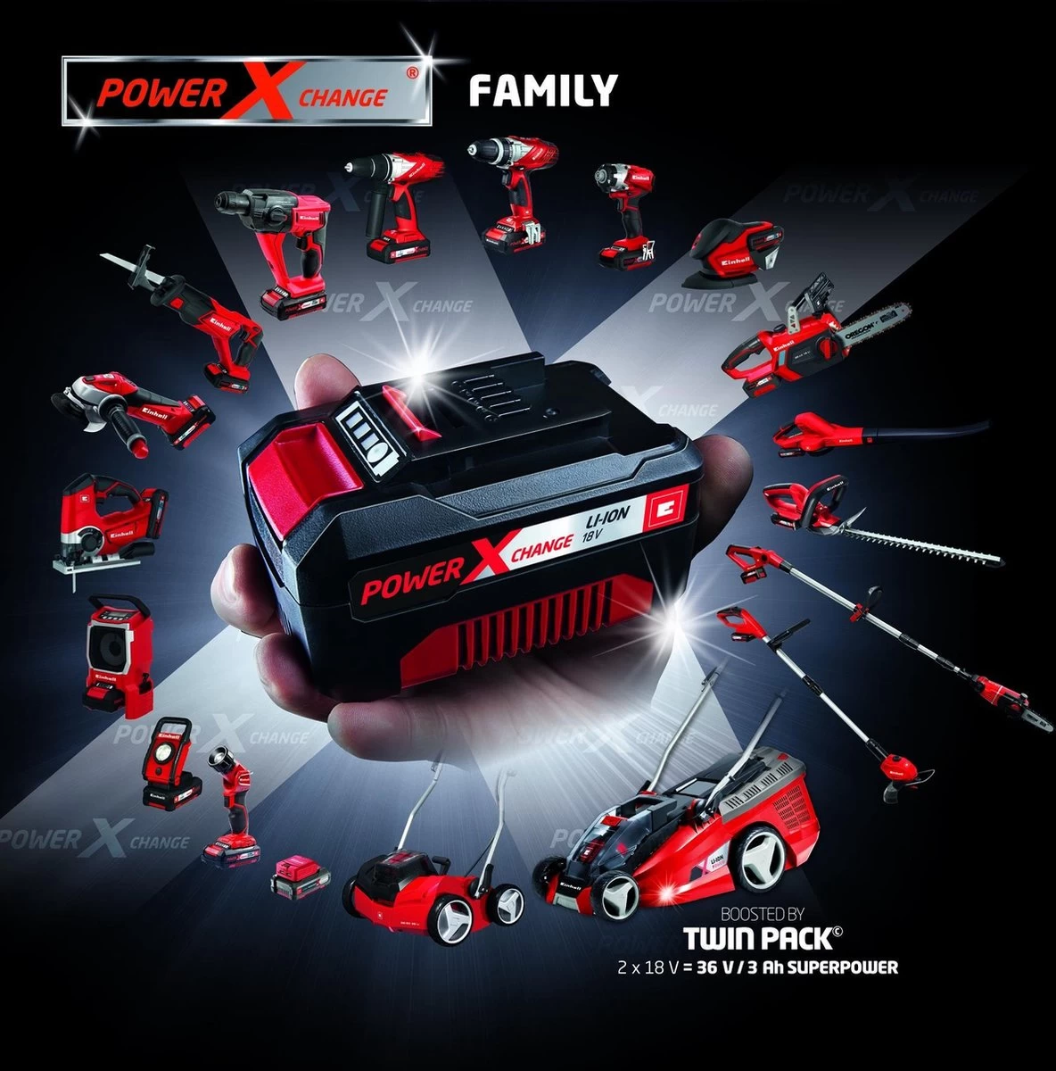En raison des possibilités techniques actuelles avec les batteries lithium-ion, EINHELL a également développé une gamme de produits complète dans laquelle les batteries sont interchangeables entre les machines Tools et Garden. Einhell Power X-Change. Presque tous les articles de la gamme de produits Power-X-Change peuvent être achetés en version «SOLO» (sans batterie et chargeur) ou en version «KIT» (y compris batterie et chargeur). Si vous possédez déjà une batterie Power X-Change, il vous suffit d’acheter une machine Solo, cela vous fait économiser beaucoup d’argent! EINHELL ayant développé son propre système de batterie intelligent, vous pouvez continuer à utiliser vos batteries existantes avec les futures machines EINHELL Power X-Change.