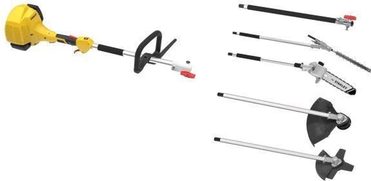 STANLEY Outil 4 En 1 – Coupe-bordure – Débroussailleuse – Elagueuse – Taille Haie – Moteur 26 Cm² 2 Temps – Carburateur Walbro