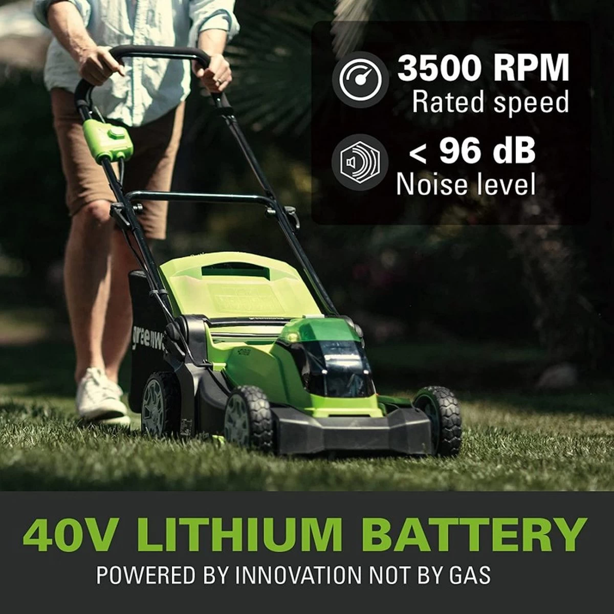 Le 40 VOLT 2,0 Ah, 4,0 Ah ou 6,0 Ah. Les batteries de la tondeuse peuvent également être utilisées dans plus de 25 autres machines de jardin Greenworks 40 VOLT telles que les taille-haies, les souffleuses à feuilles et les scies à chaîne, etc. Cette gamme sera encore élargie dans les années à venir.